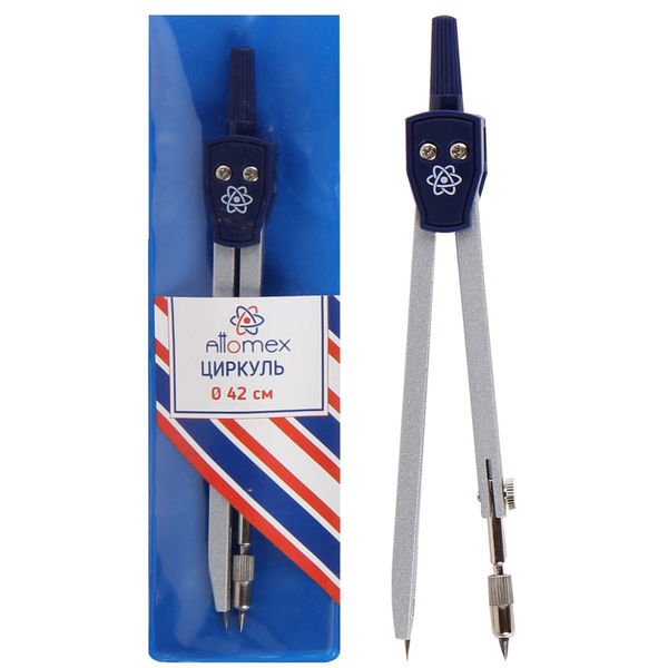 Циркуль, 1 предмет, 13,5 см, металл, ПВХ чехол, Attomex