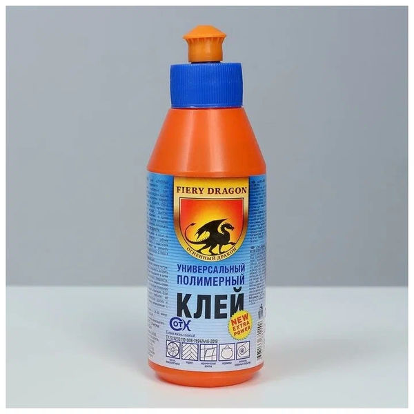 Клей универсальный полимерный. Прозрачный и водостойкий. Предназначен для наклеивания изделий из пенополистирола, экструдированного пенополистирола, глазури, паркета, паркетной мозаики, керамики, напольных ковровых покрытий, дерева, дерево-подобных материалов, пробки, искусственной кожи, бумаги, ткани и пр. Применяется для склеивания вышеперечисленных материалов друг с другом и в разных комбинациях, а также для приклеивания этих материалов к бетонным, цементно- известковым, гипсовым, штукатурным и кирпичным поверхностям. Клей создает водонепроницаемый шов. Клей "Огненный Дракон" применяется для приклеивания потолочных плит, потолочных бордюров и других изделий из полистирола, линолеума, ковровых покрытий, паркета, керамики, стекла, дерева, кожи, асбеста, картона на бетонные, гипсовые, цементно-известковые, кирпичные и прочие поверхности, а также для склеивания между собой в различных комбинациях. Время высыхания 20-60 минут, в зависимости от нанесенного слоя.