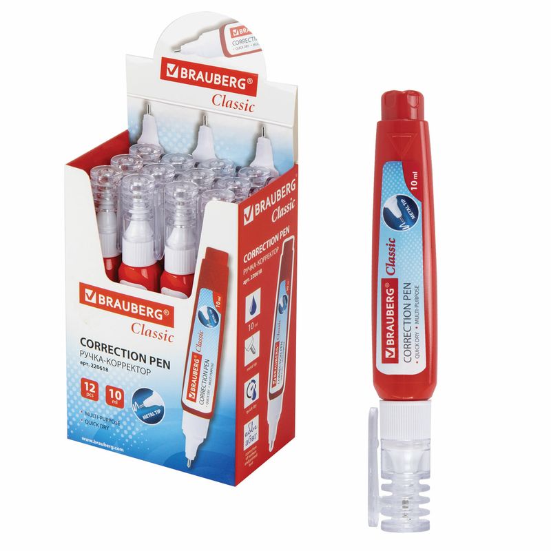 Ручка-корректор BRAUBERG, 10 мл, металлический наконечник