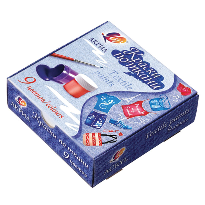 Краски по ткани акриловые ЛУЧ 9 цветов по 15 мл, в баночках