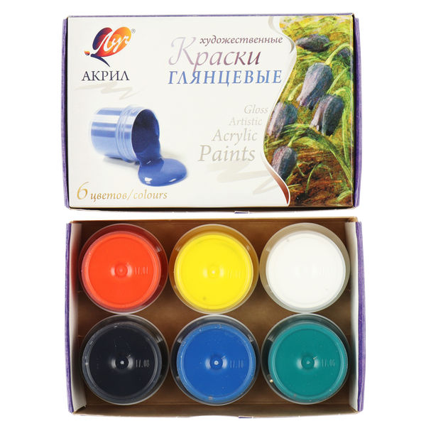 Краска акриловая художественная, 6 цветов, 20 мл, картонная коробка, Луч
