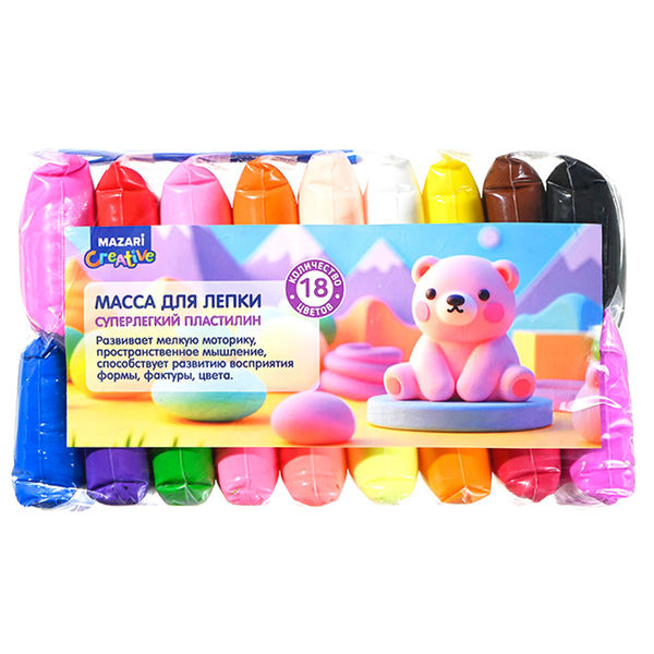 Пластилин легкий, 18 цветов, 216 гр, 3 стека, Mazari